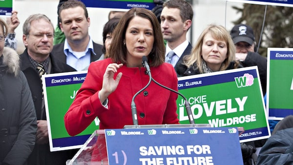 Wildrose Leader Danielle Smith makes a campaign speech in Edmonton Wednesday, March 28, 2012 for the upcoming Alberta provincial election. Voters in Alberta will go to the polls on Monday, April 23, 2012.Jason Franson/The Canadian Press