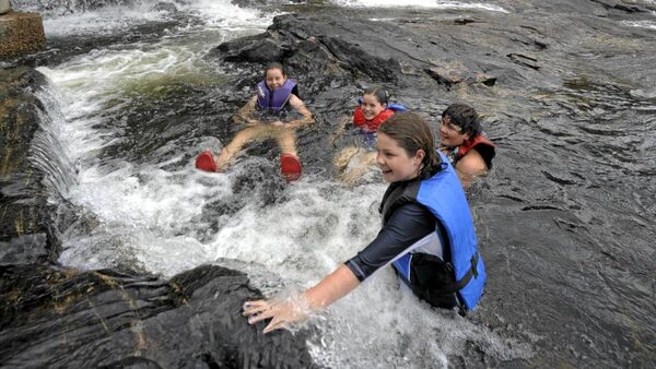 Karen McGhee would be quick to tell him it isn't. The Bala Falls project manager has her work cut out for her trying to convince residents that the north falls, whose gentle rapids and quartzite-striped slabs of granite have been luring passersby for decades, won't change: Swift River is obliged to maintain mandated minimum water flows - enough to power several generators downstream as well as preserve existing recreational uses.