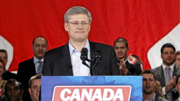 Canada's Prime Minister Stephen Harper pauses before speaking at a rally to celebrate the fifth anniversary of the Conservative parties minority government in Ottawa January 23, 2011.Blair Gable/Reuters