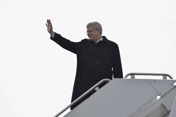 Prime Minister Stephen Harper boards a plane heading to Poland in Ottawa, Tuesday June 3, 2014 .Adrian Wyld/The Canadian Press