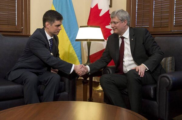 Prime Minister Stephen Harper meets with Vadym Prystaiko, the Ukrainian ambassador to Canada, Monday March 17, 2014 in Ottawa.Adrian Wyld/The Canadian Press