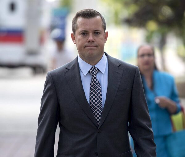 Chris Woodcock, former director of issues management in the Prime Minister's Office, arrives at the courthouse in Ottawa for his second day of testimony at the trial of former Conservative Senator Mike Duffy on Tuesday, August 25, 2015.Justin Tang/The Canadian Press