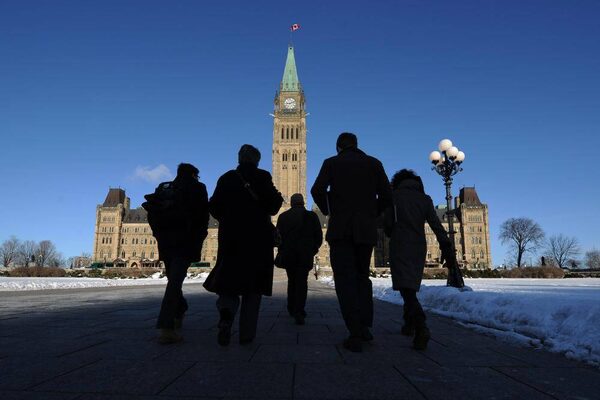 FILE PHOTO: People make their way towards the Centre Block of Parliament Hill as business resumes following the winter break in Ottawa on Monday, January 30, 2012.Sean Kilpatrick/The Canadian Press