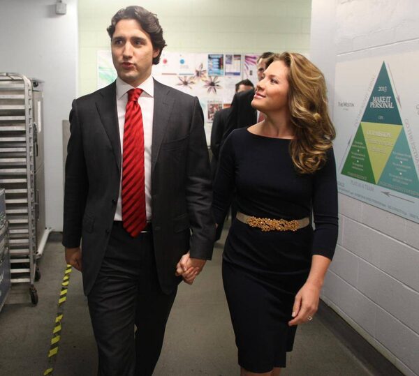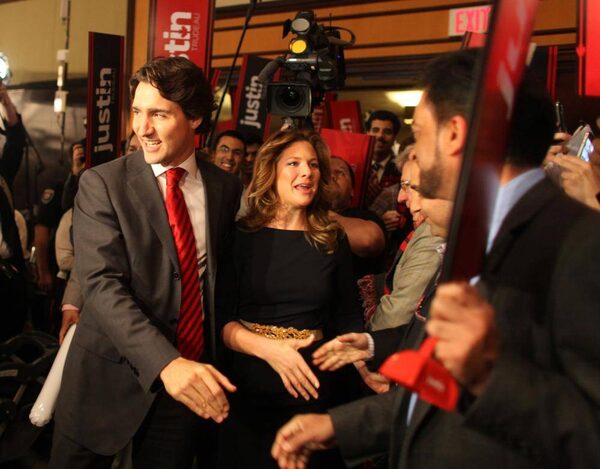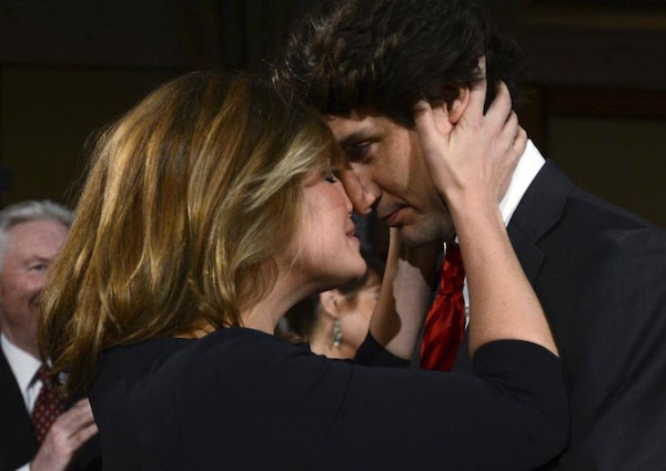 Justin Trudeau arrives with his wife, Sophie Gregoire-Trudeau, inside the event hall in Ottawa where the Liberal Party will announce the result of the leadership vote.Peter Power/The Globe and Mail