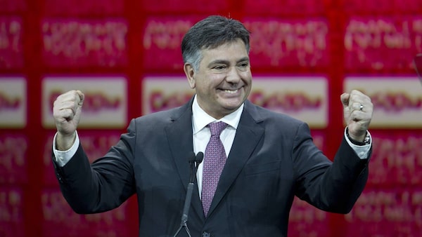 Charles Sousa on stage at the convention.Kevin Van Paassen/The Globe and Mail