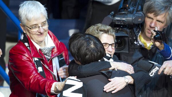 Sandra Pupatello, right, congratulates Kathleen Wynne after Wynne became the new leader of the Ontario Liberal Party. The 59-year-old Wynne will be the province's first female and openly gay premier.Kevin Van Paassen