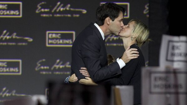 Eric Hoskins' wife and son joined him on stage after his speech.Peter Power/The Globe and Mail