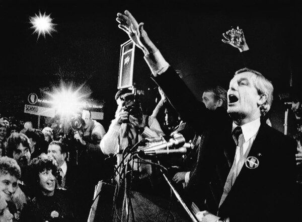 Mr. Lougheed meets Progressive Conservative supporters in Edmonton on Nov. 4, 1982, after his party swept to another election victory.The Canadian Press