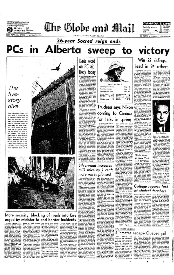 Peter Lougheed’s majority victory in August, 1971, brought the 36-year dynasty of the Social Credit Party to an end in Alberta.The Globe and Mail
