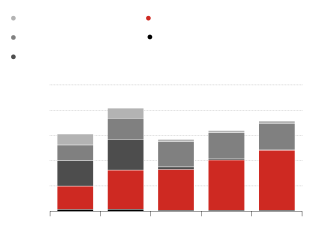 Five-year total, in millions of dollars