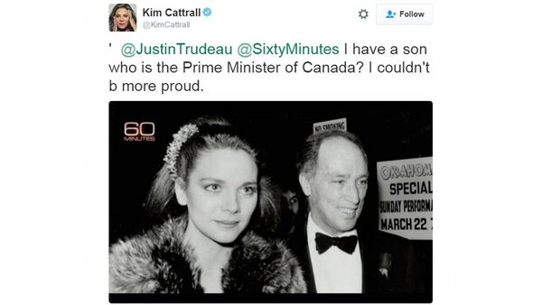 '@60Minutes I have a son who is the Prime Minister of Canada? I couldn't b more proud. @CBCTheNational pic.twitter.com/EiqzzJJjOl