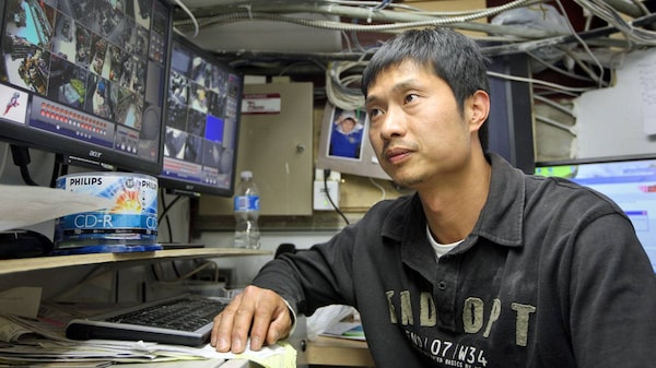 Toronto grocer David Chen looks at security footage of his store on May 26, 2009. Mr. Chen was charged with kidnapping for allegedly detaining a shoplifter he caught pilfering merchandise.Charla Jones/The Globe and Mail