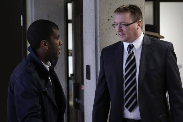 Defence lawyer Lyle Howe speaks with client and Dartmouth North MLA Trevor Zinck at the Supreme Court prior to the start of the trial in Halifax on Monday, June 10, 2013.Devaan Ingraham/The Canadian Press