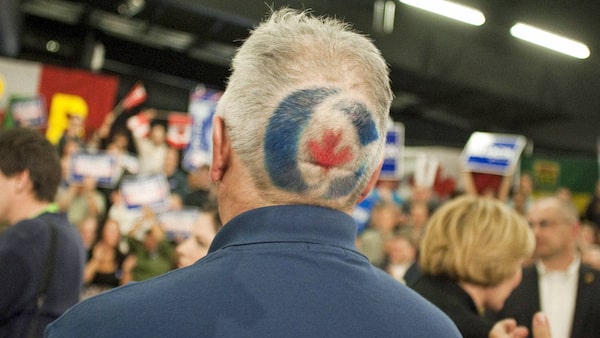 A Conservative Party supporter waits for Stephen Harper to speak at a campaign stop in Saskatoon on April 15, 2011.DAVID STOBBE/Reuters