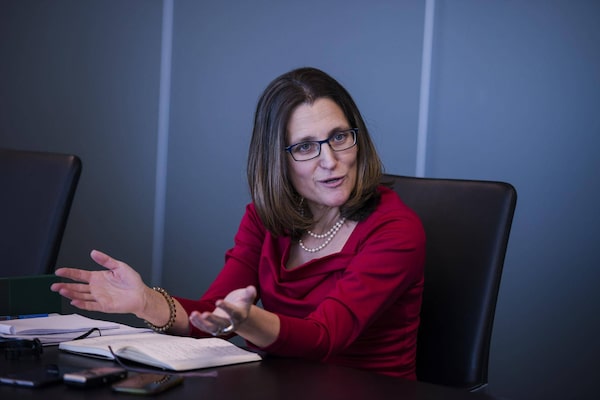 Foreign Affairs Minister Chrystia Freeland meets with the Globe and Mail's editorial board in Toronto, on Dec. 1, 2017.Christopher Katsarov/The Globe and Mail