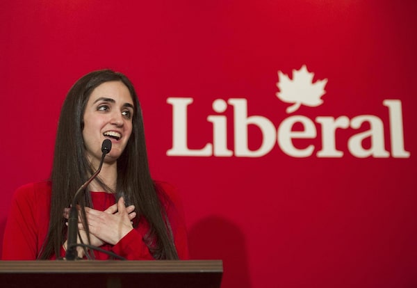 Emmanuella Lambropoulos reacts after winning the Liberal party nomination for the riding of Saint-Laurent in Montreal, Wednesday, March 8, 2017.Graham Hughes/The Canadian Press