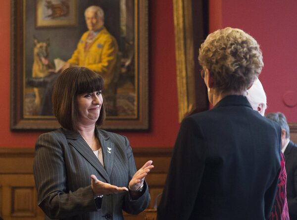 Ontario premier Kathleen Wynne, right, welcomes Marie-France Lalonde during a cabinet shuffle at Queen's Park in Toronto on Thursday, January 12, 2017.Nathan Denette/The Canadian Press
