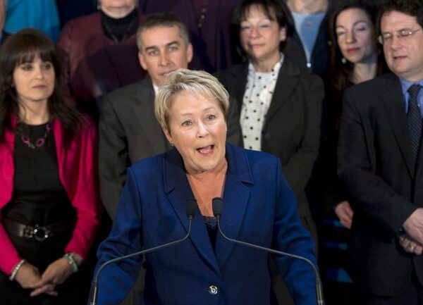 Quebec Premier and Parti Quebecois Leader Pauline Marois calls for a general provincial election, while standing in front of her cabinet, Wednesday, March 5, 2014 in Quebec City.Jacques Boissinot/The Canadian Press