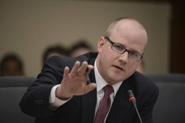 Chris Morley, former chief of staff for Dalton Mcguinty has an exchange with Conservative Vic Fedeli during hearings into gas plant cancellations.Fred Lum/The Globe and Mail