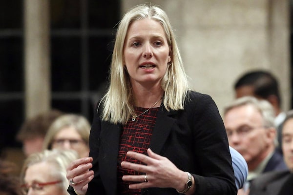 Environment Minister Catherine McKenna stands in the House of Commons during Question Period in Ottawa, Monday, March 7, 2016.FRED CHARTRAND/The Canadian Press