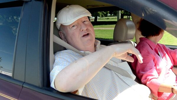 Suspended Senator Mike Duffy pictured out front of the Kozy Kennell in Kensington, PEI on Friday, July 18th.Andrew Collins