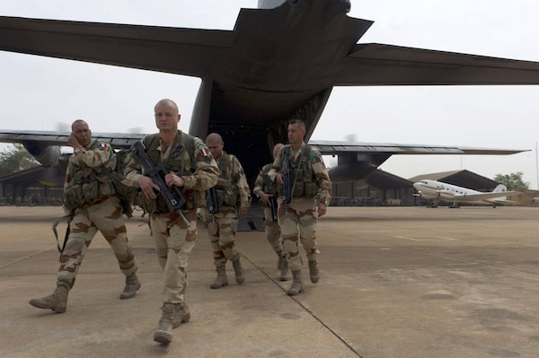 French soldiers exit a military plane at Bamako airport, Mali, on Jan. 13, 2013.Jeremy Lempin/The Associated Press