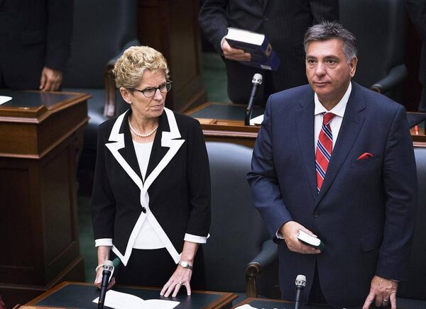 Ontario Premier Kathleen Wynne is sworn in alongside Liberal MPP Charles Sousa during a swearing in ceremony at Queen's Park in Toronto on Wednesday, July 2, 2014.Aaron Vincent Elkaim/The Canadian Press