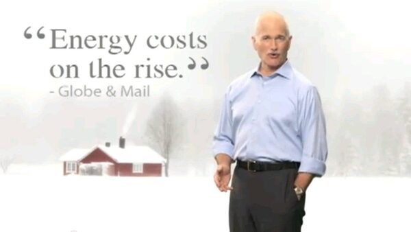 The ads show Mr. Layton in front of a large Canadian flag and also feature a shot of snow-covered house. His proposal would mean a 5 per cent reduction in home heating costs.