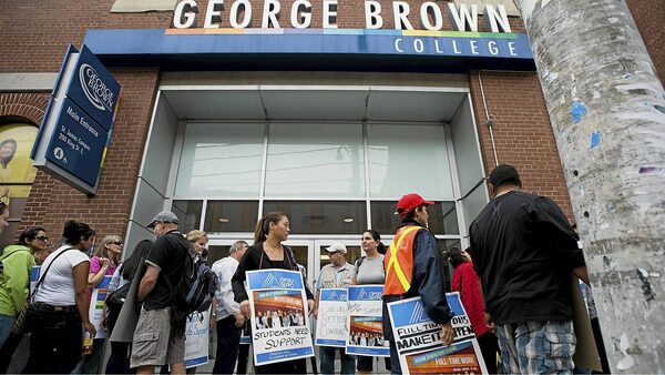 Student support workers strike for a better contract outside the George Brown Campus on King Street in Toronto on Sept. 1, 2011.Aaron Vincent Elkaim/The Canadian Press
