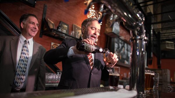 NDP leader Thomas Mulcair pours a beer during a tour of the Walkerville Brewery in Windsor, Ontario, Wednesday, May 20, 2015.Geoff Robins/The Globe and Mail