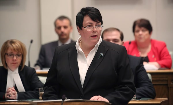 Newfoundland and Labrador Finance Minister Cathy Bennett presents the 2016 provincial budget at the legislature in St.John's, Thursday, April 14, 2016.PAUL DALY/The Canadian Press