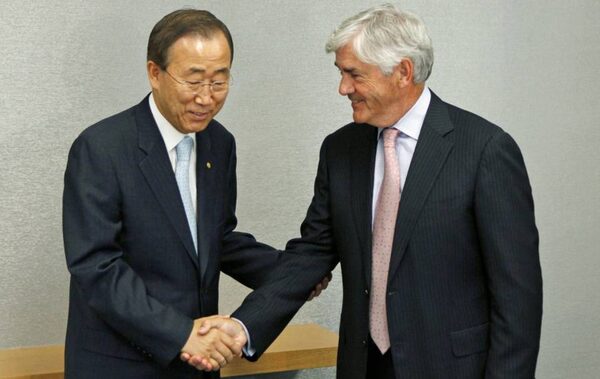 Secretary-General Ban Ki-moon greets Foreign Affairs Minister Lawrence Cannon at United Nations headquarters in New York on Aug. 19, 2010.LUCAS JACKSON/Reuters