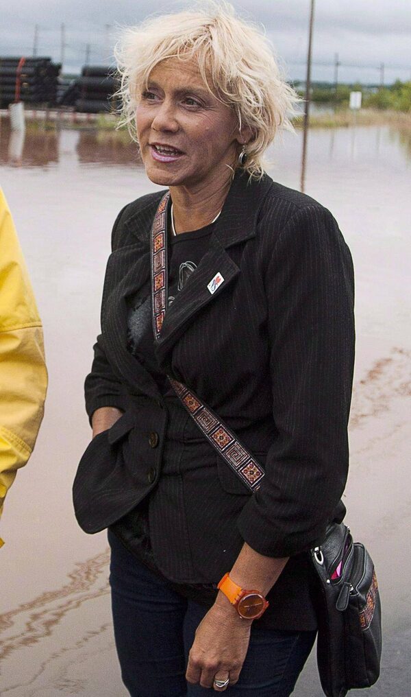 Truro-Bible Hill MLA Lenore Zann tours a flooded in Truro, N.S. on Sept. 10, 2012.ANDREW VAUGHAN/The Canadian Press