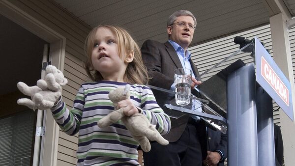 Stephen Harper made a bid for the middle class vote with a $2.5-billion tax break pledge aimed at parents of children under 18. The Conservative Leader unveiled his “Family Tax Cut” pledge in the Victoria-area riding of Esquimalt-Juan de Fuca Monday morning. The measure would allow parents to split, or share, up to $50,000 of their household income for tax purposes. But there's a huge catch to this: It wouldn't take effect until the deficit is eliminated – a date that could be four years in the future.Adrian Wyld