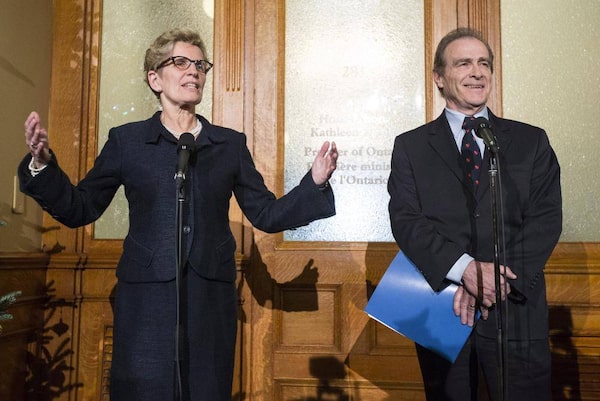 Ontario Premier Kathleen Wynne, left, speaks with Deputy Mayor of Toronto Norm Kelly after their meeting in Toronto, Tuesday Dec. 3, 2013. This marks the first time a meeting between the city and province since Toronto city council stripped Toronto Mayor Rob Ford of some of his powers.Mark Blinch/The Canadian Press