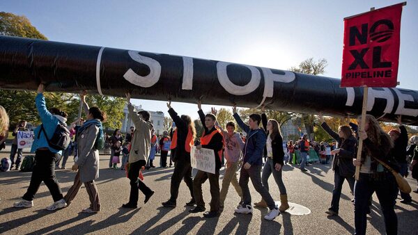 Demonstrators protest against the proposed Keystone XL pipeline outside the White House on Nov. 6, 2011.Evan Vucci