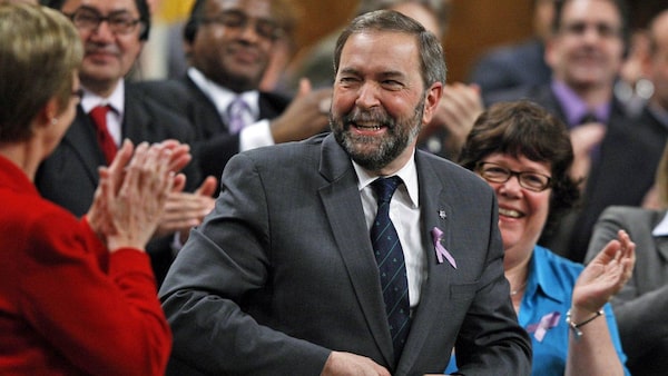 Thomas Mulcair receives a standing ovation as he rises for the first time as NDP Leader during Question Period in the House of Commons on March 26, 2012.Adrian Wyld