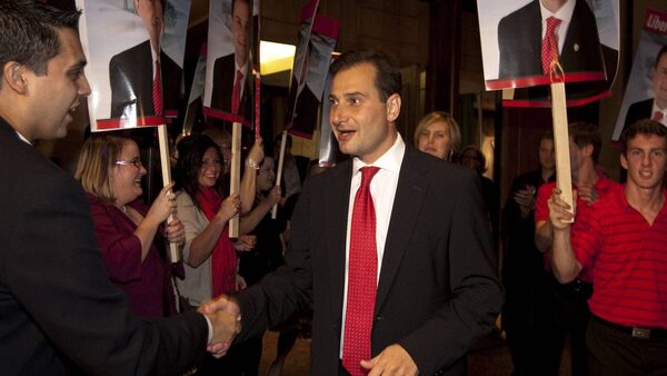 Prince Edward Island Premier Robert Ghiz greets supporters in Charlottetown on Monday, Oct. 3, 2011. Ghiz's Liberal party won a majority in the provincial election.THE CANADIAN PRESS / Andrew Vaughan