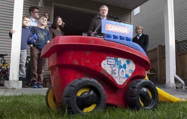 Neighbours peered out the windows as TV cameras, reporters, political fixers and local candidates descended on the Wellburn backyard to hear about a key plank of Stephen Harper's platform.