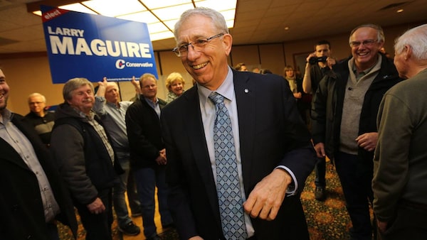 Conservative candidate Larry Maguire enters his victory party following a tight byelection in the Brandon-Souris area in Brandon, Man., Monday night, Nov. 25, 2013.TREVOR HAGAN/The Canadian Press