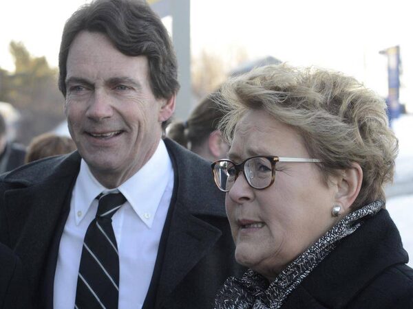 Parti Quebecois Leader Pauline Marois and candidate Pierre-Karl Peladeau make a campaign stop at train station in Laval, Que., on Friday, April 4, 2014.Ryan Remiorz/The Canadian Press