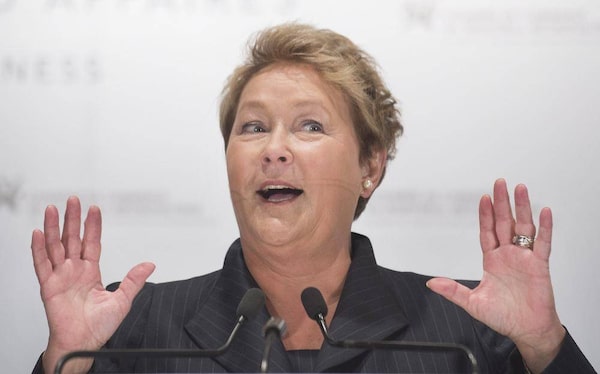 Parti Quebecois leader Pauline Marois speaks to the Montreal Chamber of Commerce during a Quebec provincial election campaign stop in Montreal, Wednesday, April 3, 2014.Graham Hughes/The Canadian Press
