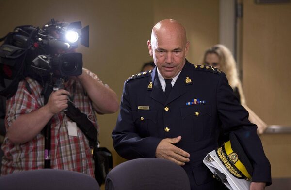 RCMP Commissioner Bob Paulson arrives at a Senate national security committee hearing witnesses on Bill C-51, the Anti-terrorism Act, in Ottawa, Monday May 25, 2015.Adrian Wyld/The Canadian Press
