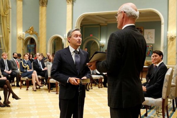 Francois-Philippe Champagne is sworn-in as Canada's Minister of International Trade during a cabinet shuffle at Rideau Hall in Ottawa on Jan. 10, 2017.CHRIS WATTIE/Reuters