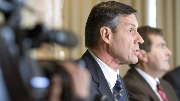 Don Morgan, Minister of Justice and Attorney General for the province of Saskatchewan, left, and Ministry of Justice Civil Law Director Gerald Tegart address media at the release of the Report of the Commission of Inquiry into the Wrongful Conviction of David Milgaard in Saskatoon, Sask., Friday, Sept. 26, 2008.Geoff Howe/The Canadian Press