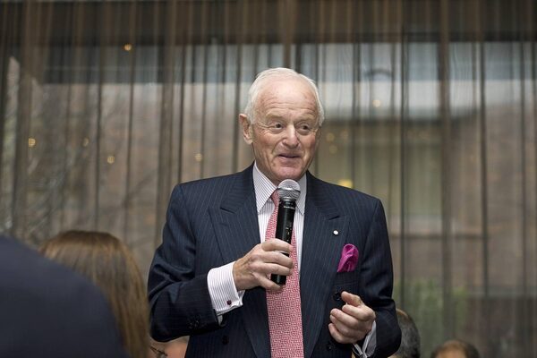 Peter Munk delivers opening remarks to a debate on humanitarian intervention at a Toronto restaurant on Dec. 1, 2008.
