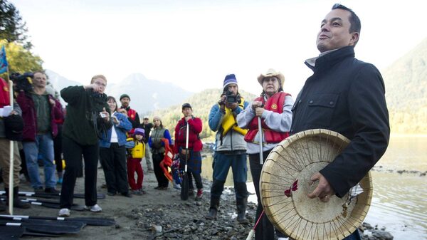 AFN chief Sean Atleo at the start of The Paddle for Wild Salmon down the Fraser River before singing a native song for the paddlers in Hope, B.C. October 20, 2010.John Lehmann/The Globe and Mail