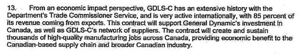 One reason the Department of National Defence has offered for supporting the deal was that it would keep London, Ont.-based defence contractor General Dynamics Land Systems in business and able to build similar machines for Canada when needed. The memo uses this rationale as well.
