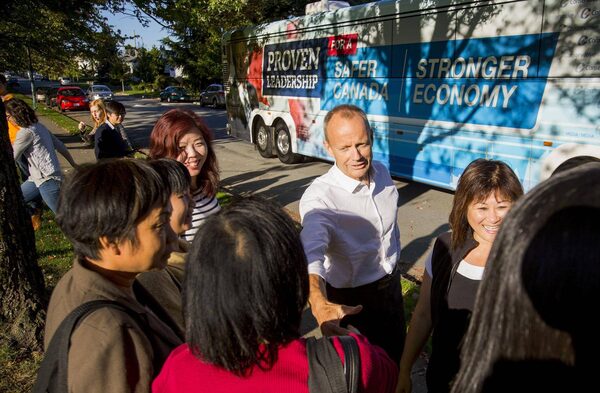 Outside the event venue, the Conservative tour bus, which is used by Mr. Harper when he is campaigning in the province, was parked and awaiting the former minister. "We recognize this is going to be a close election. We also recognize that, as the numbers come out, British Columbians are going to decide the outcome of the election."