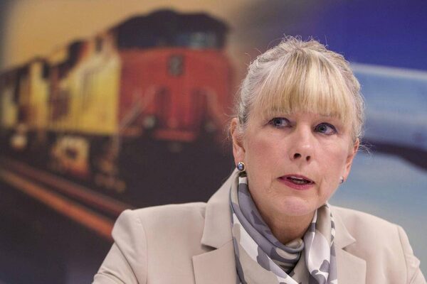 Wendy Tadros, chair of the Transportation Safety Board, attends a news conference in Burlington, Ont., on June 11, 2013. The operating crew of a Via Rail train that derailed west of Toronto last year perceived crucial signals telling them to slow down before the fatal crash, the TSB said Tuesday.CHRIS YOUNG/The Canadian Press